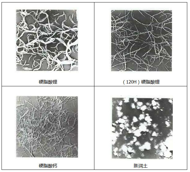 •用电子显微镜(倍率:×104)看到的润滑脂的稠化剂纤维构造。